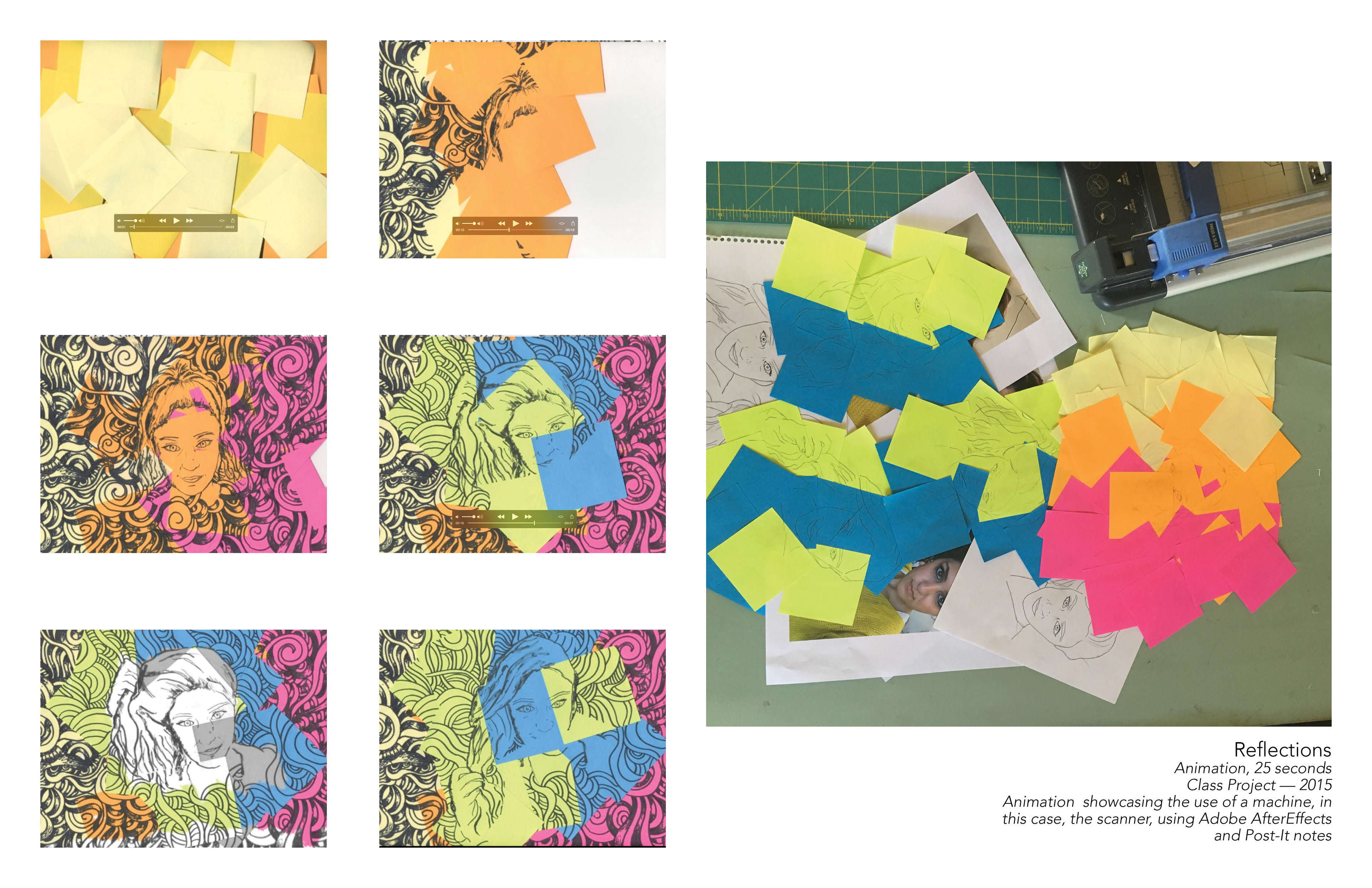 Animation, 25 seconds Class Project — 2015 Animation showcasing the use of a machine, in this case, the scanner, using Adobe AfterEffects and Post-It notes